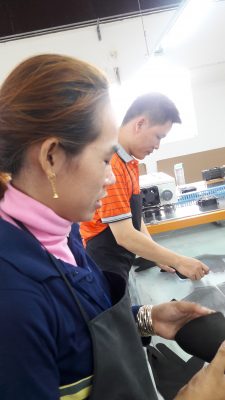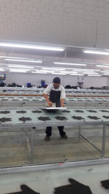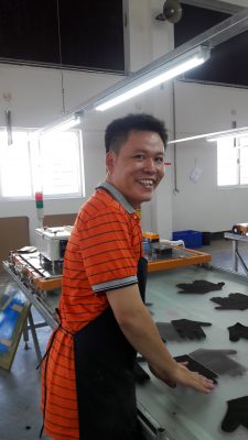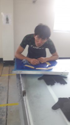 Để sản phẩm in lụa được chuẩn thì bạn cần trải phẳng và cố định các vật liệu. Sau đó, đặt khuôn vào vị trí in và dùng gạt mực để kéo mực in cho đều. Lặp đi lặp lại tương tự với các màu khác.