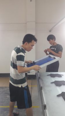 Chuẩn bị một khuôn lưới hình chữ nhật làm khuôn in. Tiếp theo sử dụng keo chuyên dụng để tráng kín khuôn lưới và đem đi sấy khô. Cuối cùng là tiến hành chụp phim bằng đèn hoặc phơi dưới nắng mặt trời, sau tầm 1 – 3 phút thì lấy khuôn ra và xịt nước vào khuôn in.